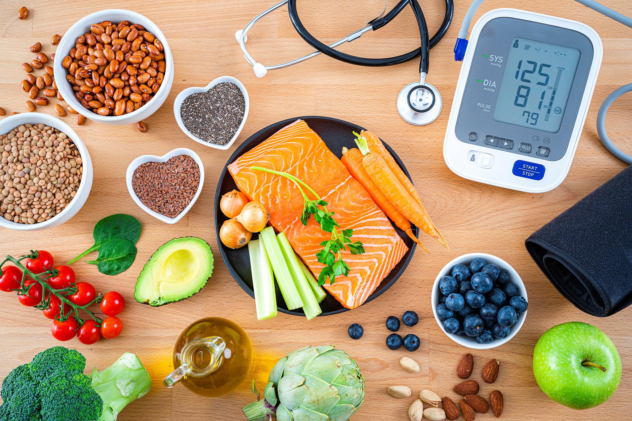 健康饮食有助于高血压以及心脑血管疾病的控制。日常饮食应坚持食物摄入多样、合理搭配,增加富含钾和膳食纤维的蔬菜、水果摄入,增加全谷物、豆类等粗杂粮及优质蛋白质摄入,减少饱和脂肪酸摄入,少吃甜食及含糖饮品。
