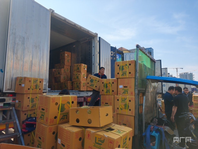 一箱箱榴莲“整装待发”(央广网见习记者 李瑶 摄)
