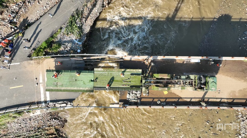 “原桥结构被严重损毁,随时可能发生二次垮塌。”承德市滦平县西沟村王北沟门桥被洪水拦腰冲断,残存的桥墩随时可能坍塌。陆军第82集团军某旅官兵认真研判后决定,架设安全高效的机械化桥,同时在桥梁上下游关键位置设置三处观察哨,严密监控水位变化。随着指令下达,驾驶员沉稳操作重型装备,巨大的桥跨模块在洪流之上被精准吊装、稳固连接。“可以通行!”听到指令,战士们引导村民从桥上有序通过。