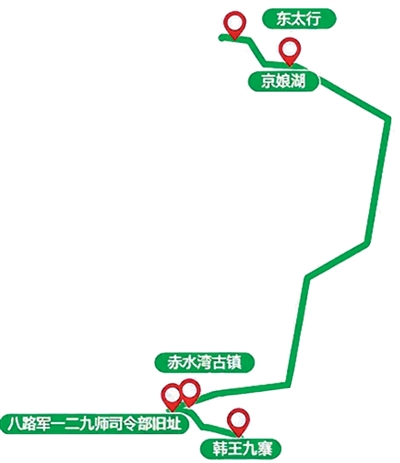 线路:东太行旅游景区—京娘湖旅游景区—八路军一二九师司令部旧址—赤水湾古镇—韩王九寨