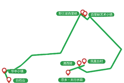 线路:野三坡百里峡—拒马河—百里峡艺术小镇—白石山风景区—华中小镇—清西陵—易水湖—恋乡·太行水镇—狼牙山