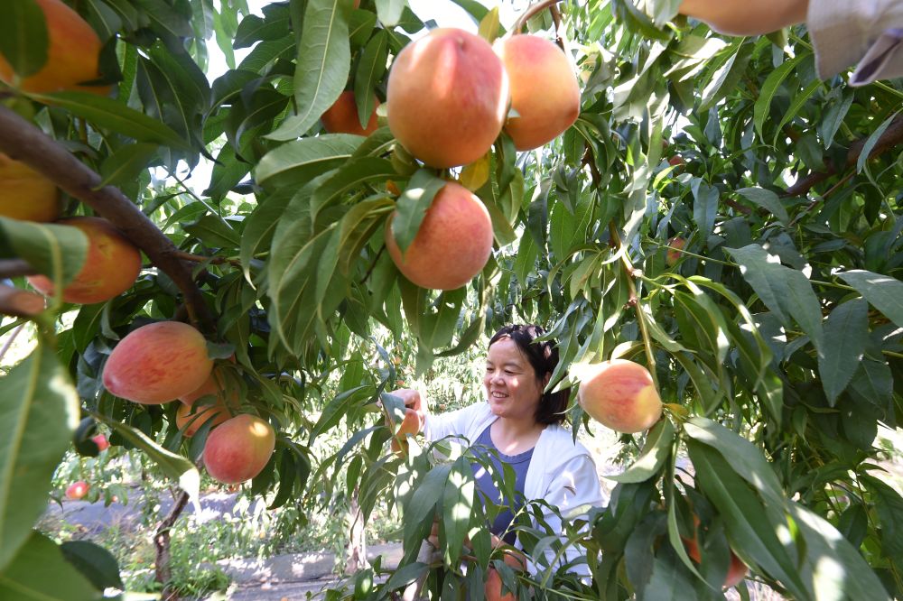 图为河北省邯郸市复兴区户村村民在采摘鲜桃。新华社记者 赵鸿宇 摄
