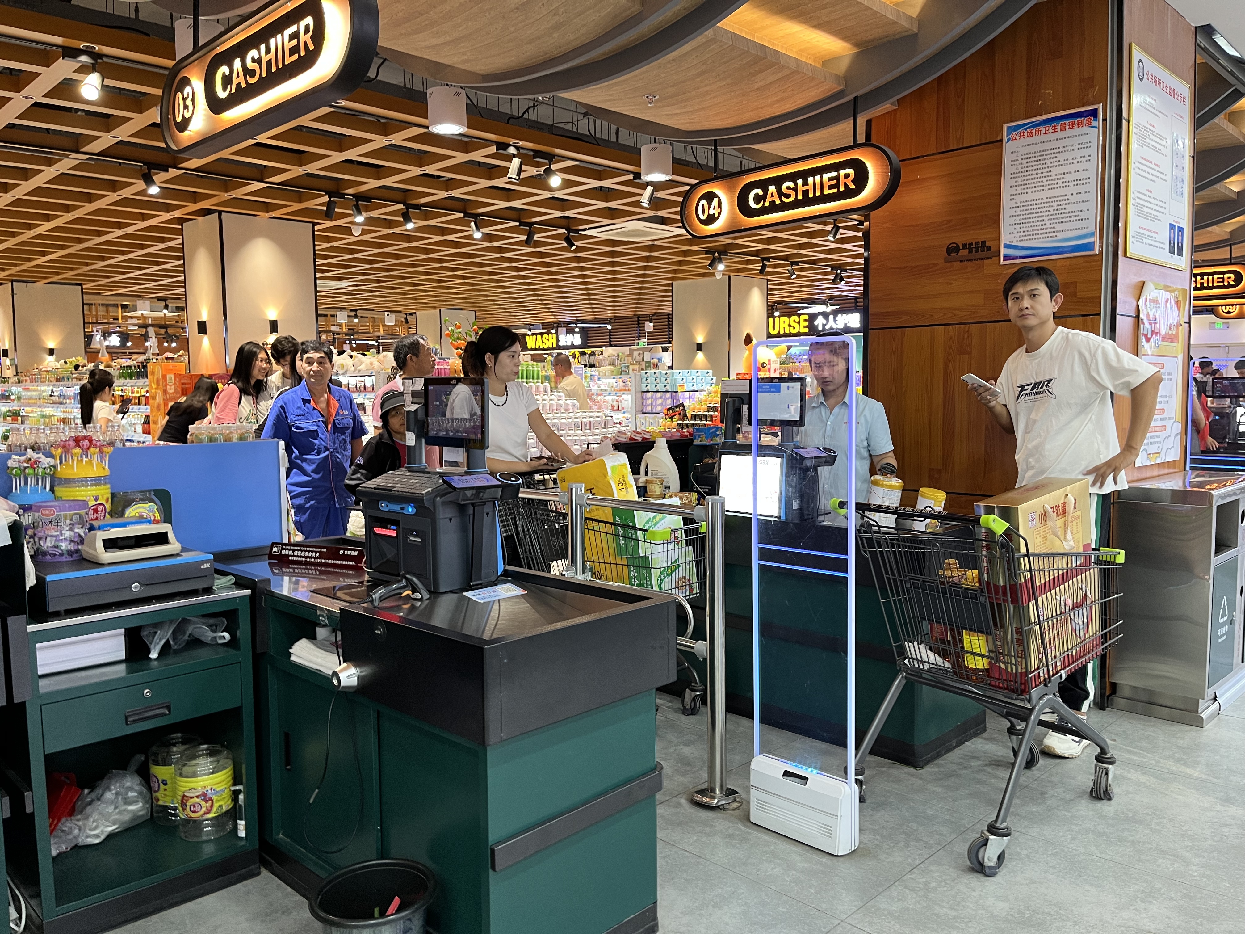 除了“车轮上的优惠”,日常商超购物也迎来消费小高潮。在华联百诚奥莱店内,购物人群络绎不绝,收银台前排起长队。不少顾客的购物车里装满了节日礼品和日常用品。