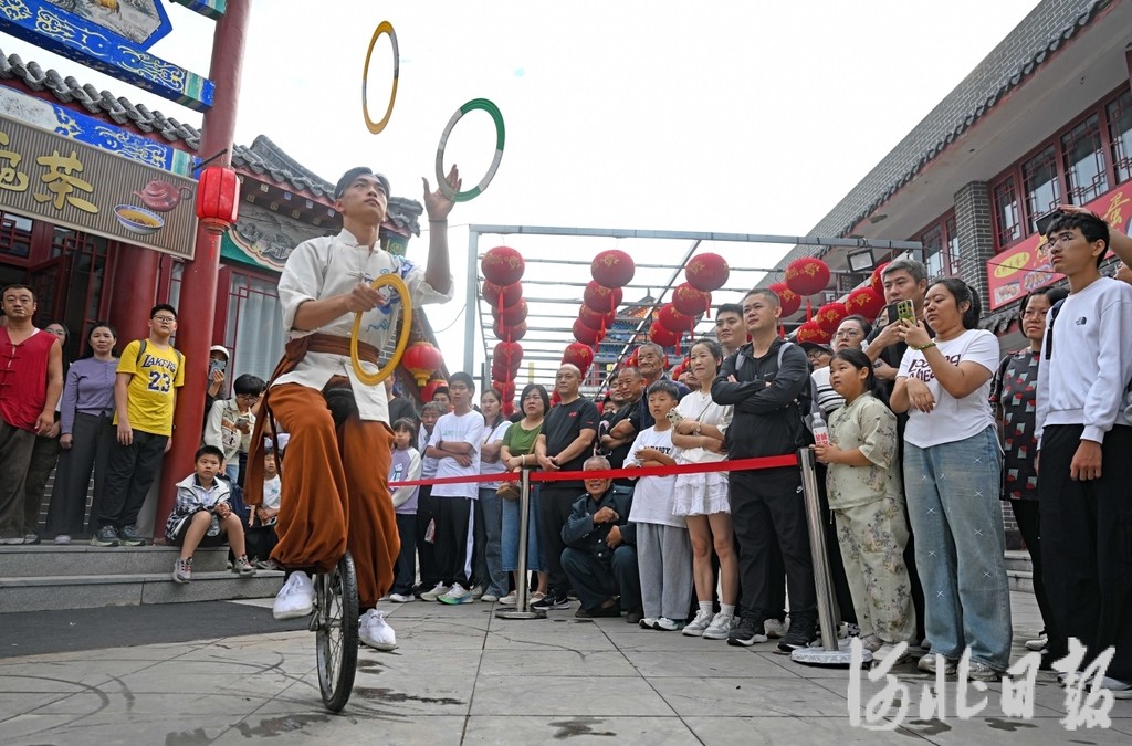 10月2日,吴桥杂技大世界景区举行“九月庙会”活动,杂技绝活、非遗展演轮番上演。河北日报记者 张昊摄