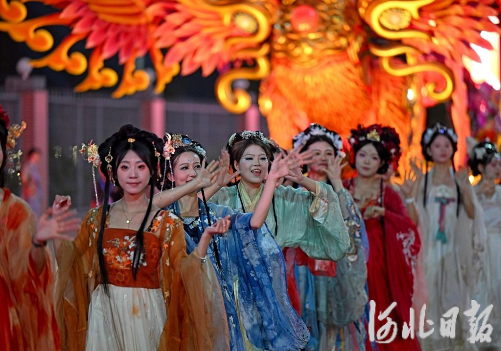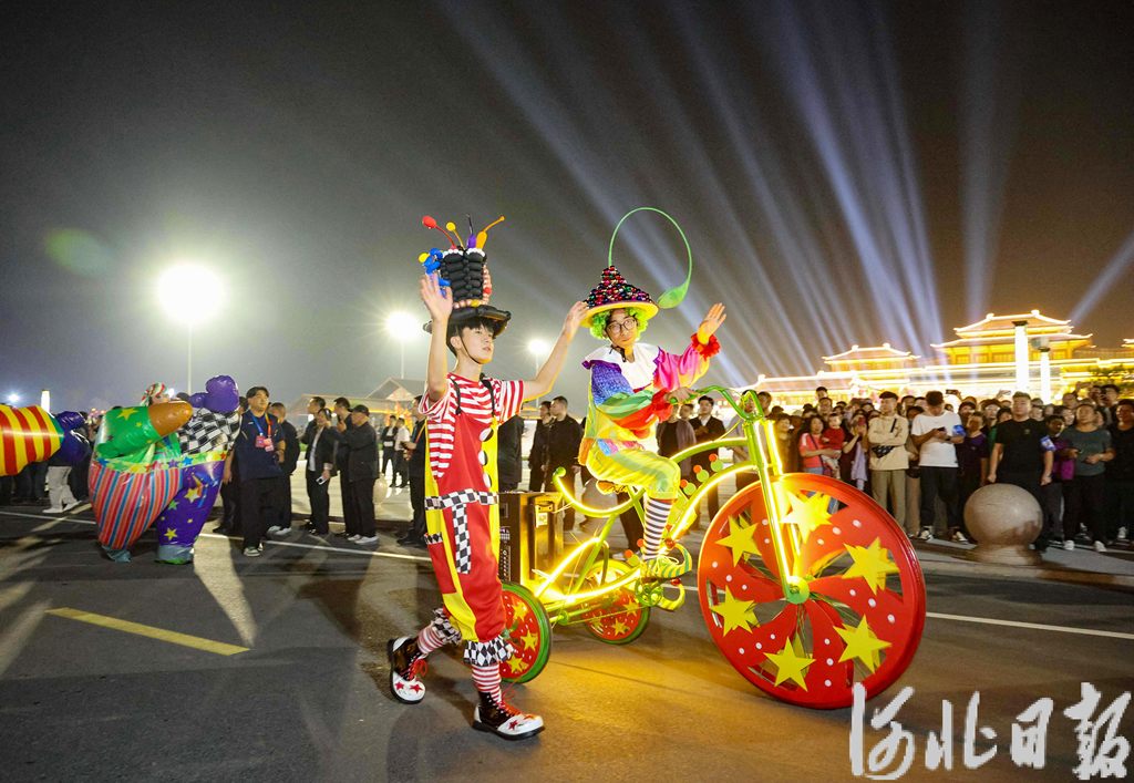 10月2日晚,吴桥杂技博物馆外,热闹的杂技巡游精彩上演。河北日报记者 张昊摄