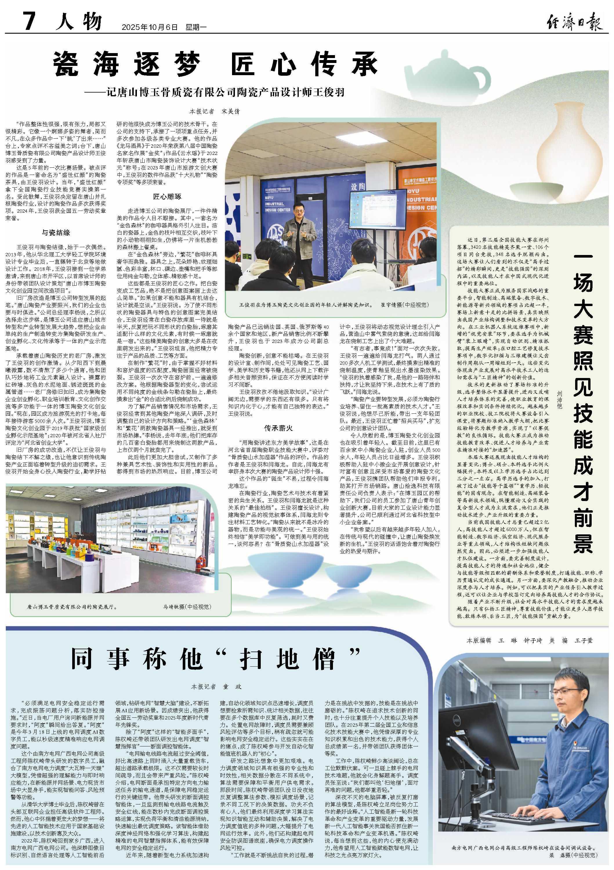 “陶瓷产业要转型发展,必须为陶瓷行业培养、留住一批高素质的技术人才。”王俊羽说,他想尽己所能,带出一支年轻团队。最近,王俊羽正忙着“招兵买马”,扩充公司的创意设计团队。