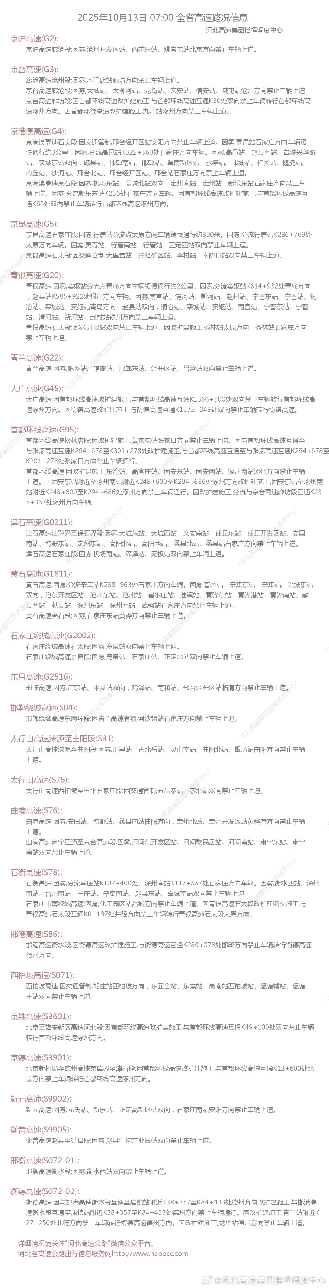 (综合自河北天气、河北交警微发布)