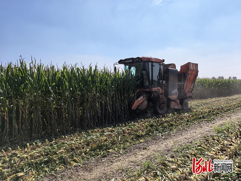 10月14日,在金沙河合作社种植基地里,玉米收获机正在作业。河北日报记者 郝东伟摄