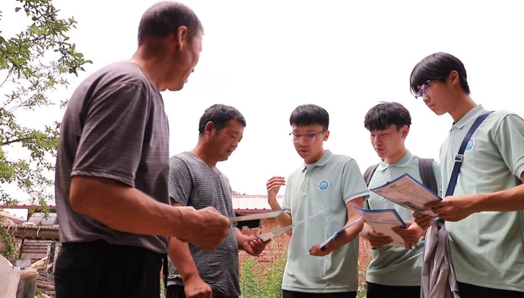 今年暑假,河北农业大学物科技学院学生在涞源乡村发放科学养殖科普手册。河北农业大学供图