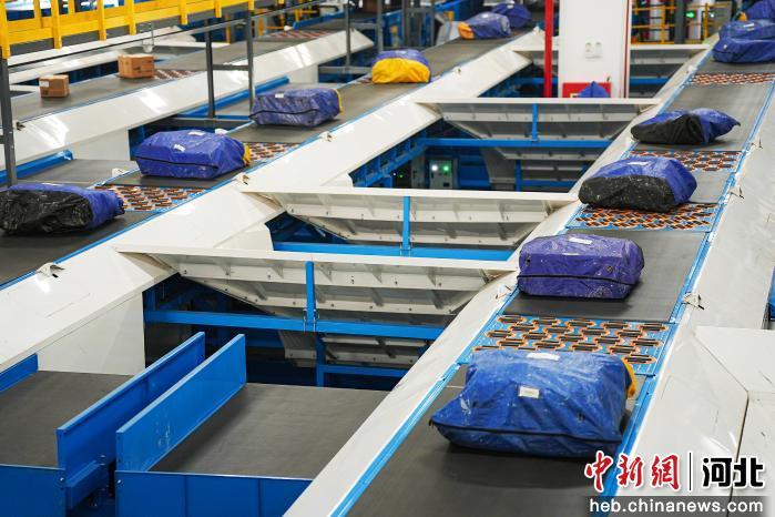 图为廊坊市广阳经济开发区中通快递北方总部分拣中心进港库内,分拣设备高速运转。 李剑锋 摄