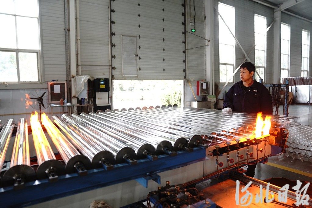 10月19日,在河北光源太阳能科技有限公司生产车间,员工正在操作设备封接内聚光偏心中温真空集热管。河北日报记者王永晨摄