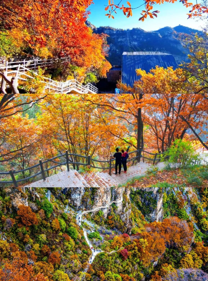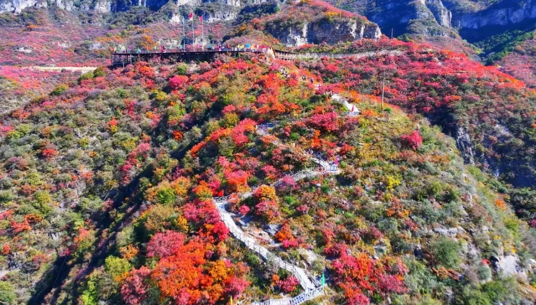 ◆九龙峡被誉为太行山最佳红叶观赏区,金秋时节群山被红叶覆盖,水浸红叶、路铺红毯,仿佛走入“十里画屏”。