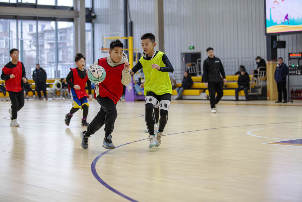 10月29日,青少年在邯郸体育公园室内场馆进行篮球训练。(受访单位供图)