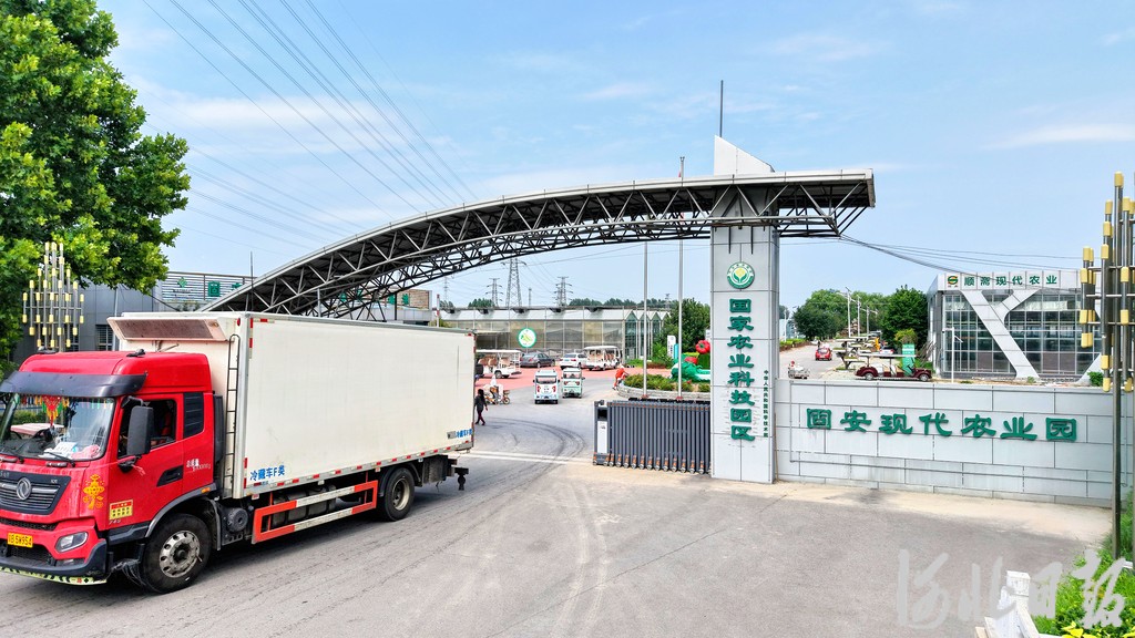 7月14日,一辆满载净菜的货车驶出固安现代农业园。河北日报记者 王伟摄