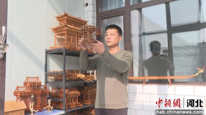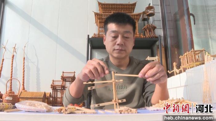 中新网河北新闻11月10日电 (俱凝搏 韩冰)在石家庄市鹿泉区黄壁庄镇黄壁庄村,这样一位秉持工匠精神的传统手工扎刻技艺传承人——崔黎光。依托“六柱锁扣”“十字卡榫”等榫卯技艺,只需将榫头与卯眼咬合,崔黎光就能用柔韧的竹条组装成各类模型和器具。