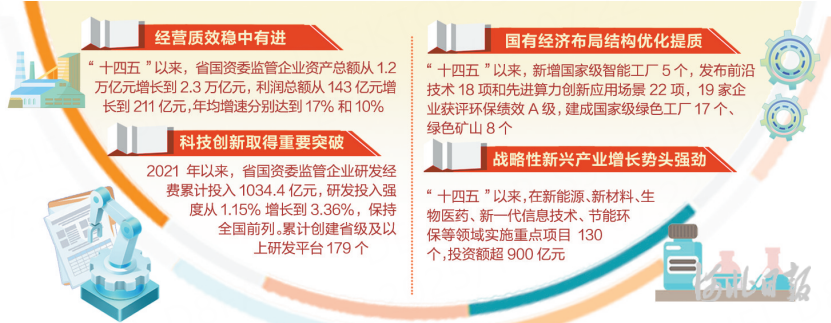 “十四五”时期,省国资委有序推进29家企业战略性重组和专业化整合,涉及资产5274亿元,推动国有经济布局结构不断优化。