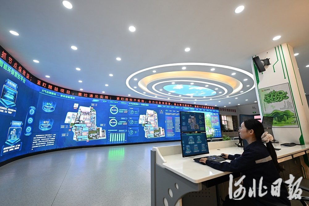 10月27日,德龙钢铁有限公司环保部工作人员在“五维一体智能环保管控中心”工作。河北日报记者赵永辉摄