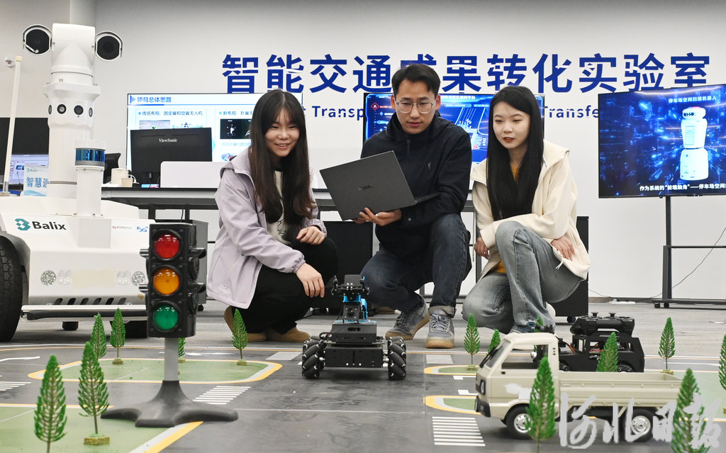 坐在电脑前,轻点鼠标,屏幕上的蓝色目标车以设定的速度通过十字路口……“你看,这辆车的速度我们人为设定得很慢,所以其通过路口时后面压了一溜车。通过这个操作,大家就可以直观理解‘幽灵路口’的概念。”11月5日,雄安国创中心科技有限公司(以下简称“国创中心”)智能交通研究所,一位工作人员向记者展示他们联合中雄智图(雄安)科技有限公司(以下简称“中雄智图”)以及北方工业大学共同研发的“车联网与智能控制实验室”教培系统。
