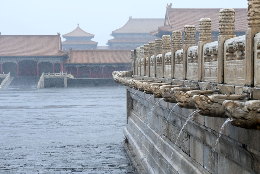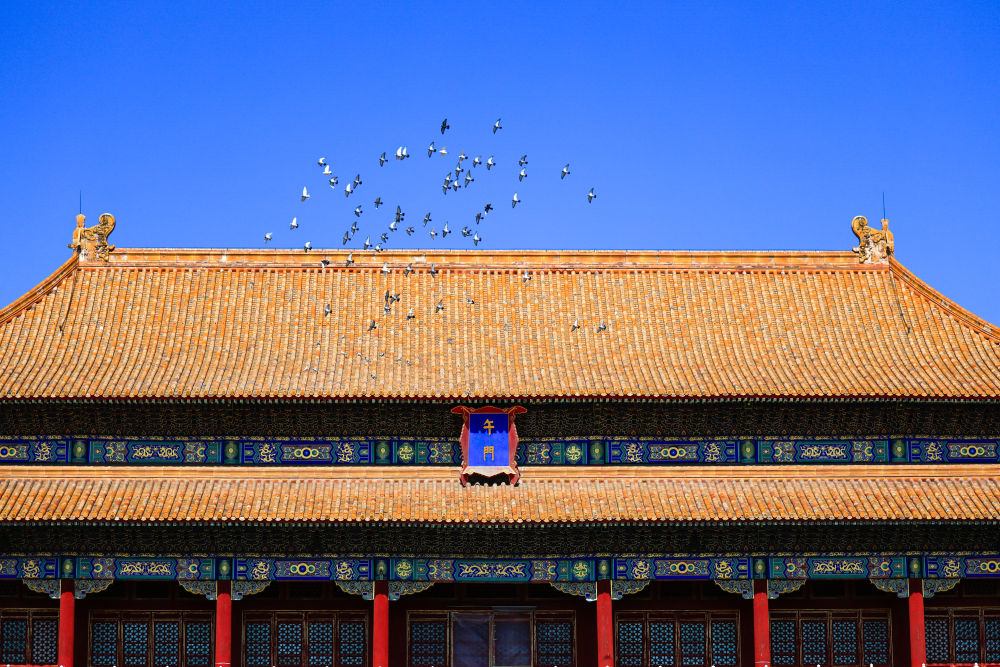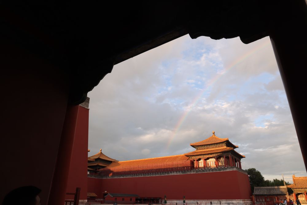 2025年/纪念中国人民抗日战争暨世界反法西斯战争胜利80周年大会在北京隆重举行,空中护旗梯队与故宫“同框”/摄影:王婧嫱
