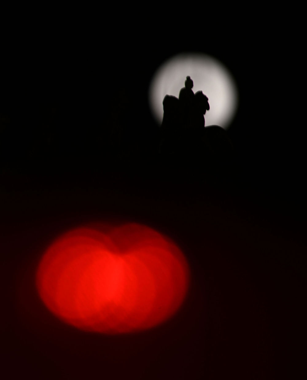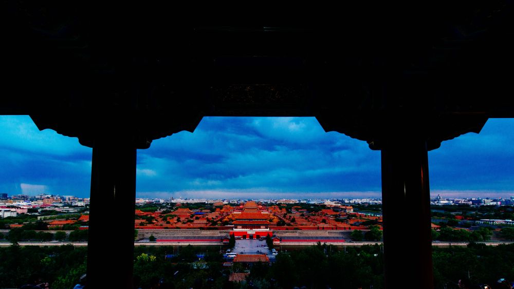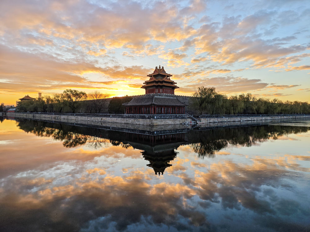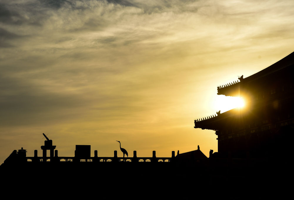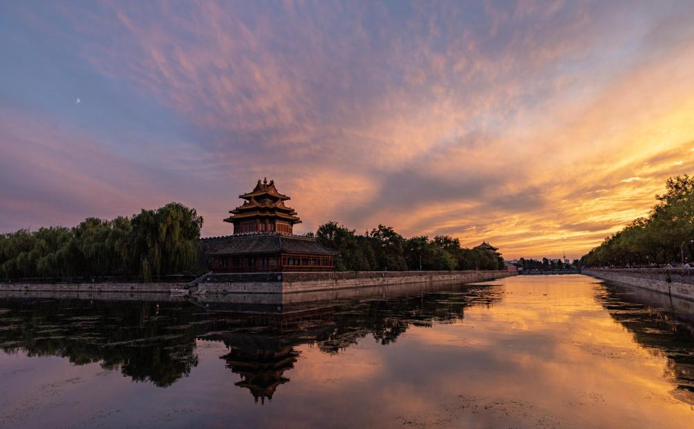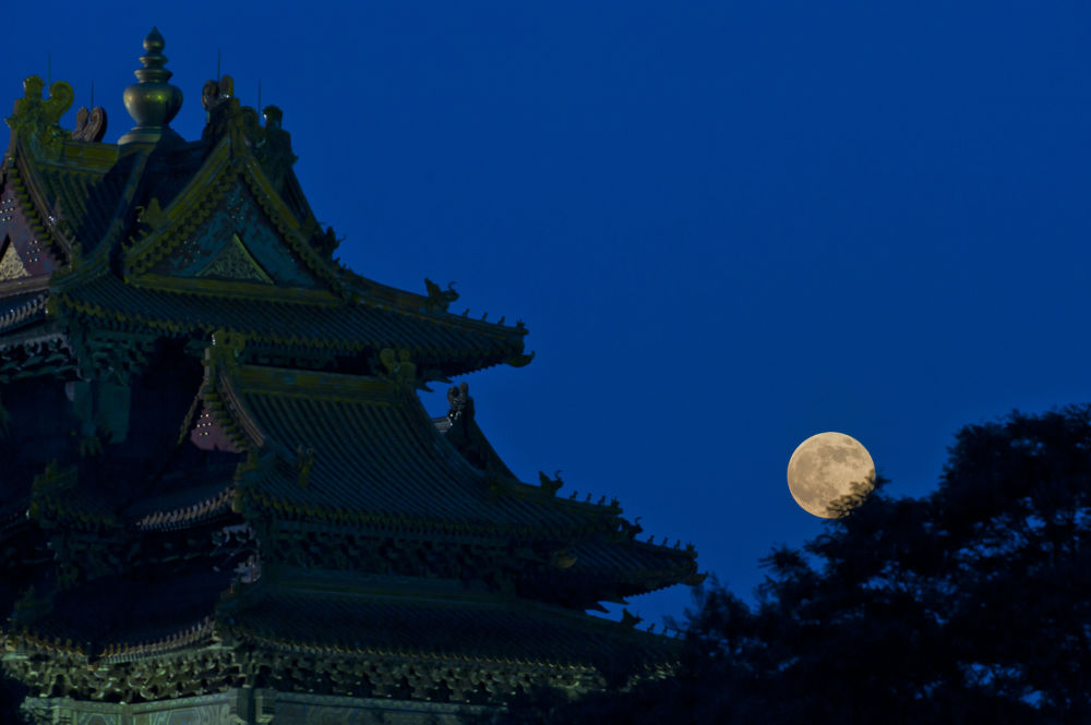 2019年/故宫角楼上的骑凤仙人、圆月与红灯笼/摄影:金良快
