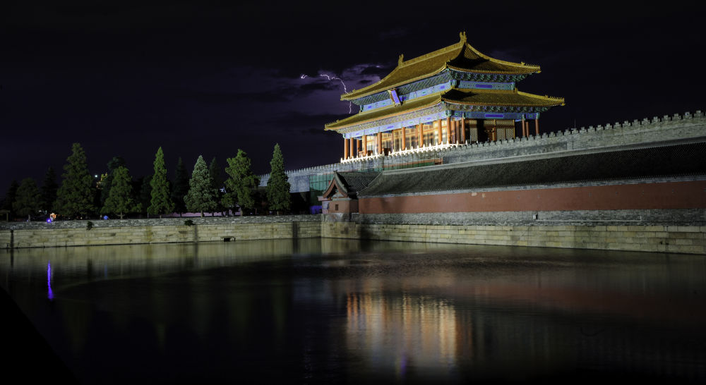 2008年/北京奥运会开幕式燃放焰火与故宫角楼/摄影:金良快