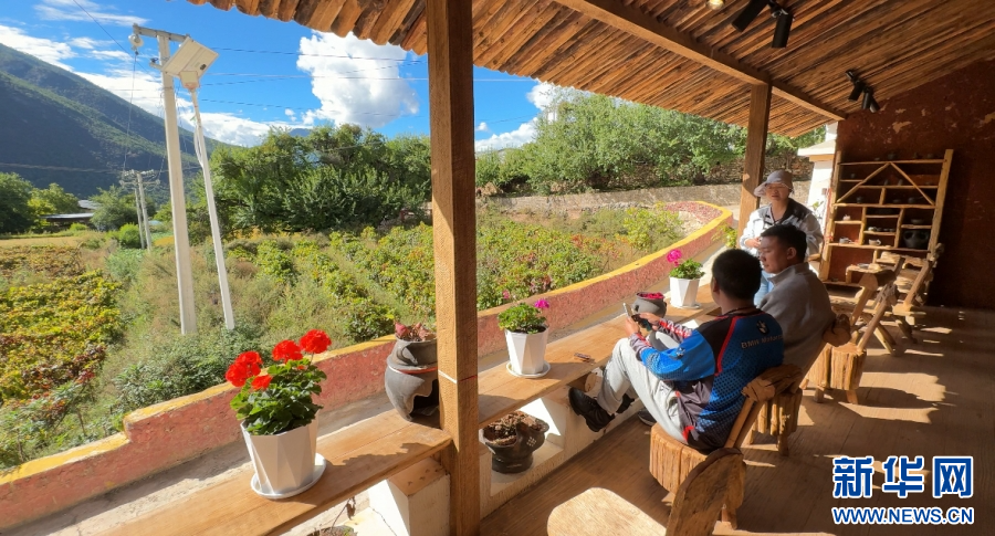 游客在汤堆村游览(9月28日摄)。新华网发(高晨晨 摄)