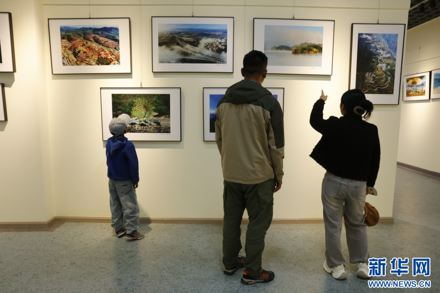 游客在迪庆藏族自治州文化馆观看摄影展(9月27日摄)。新华网发(高晨晨 摄)