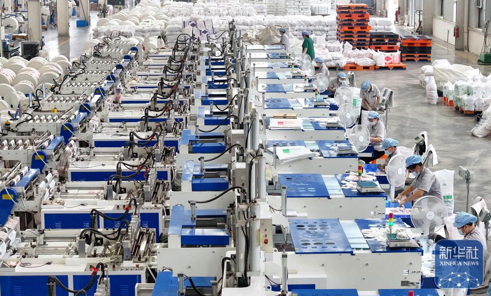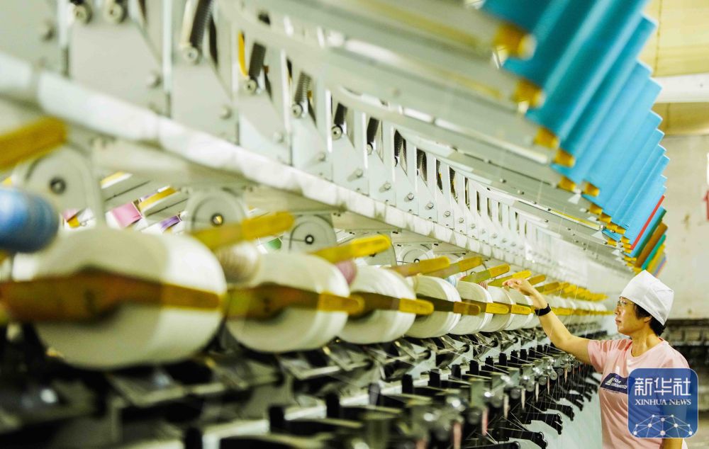 ↑ 10月1日,工人在河北省遵化市高强化纤有限公司车间工作。新华社发(刘满仓摄)