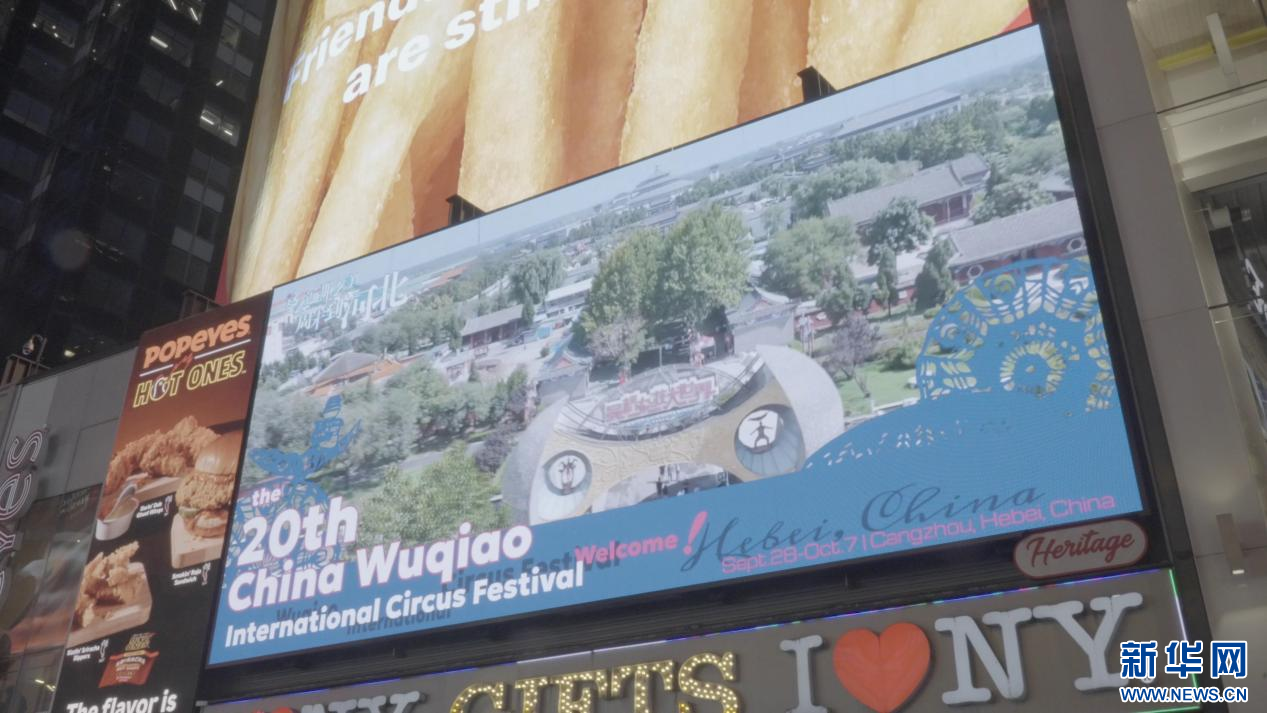 吴桥杂技大世界亮相纽约时代广场大屏。新华网 发