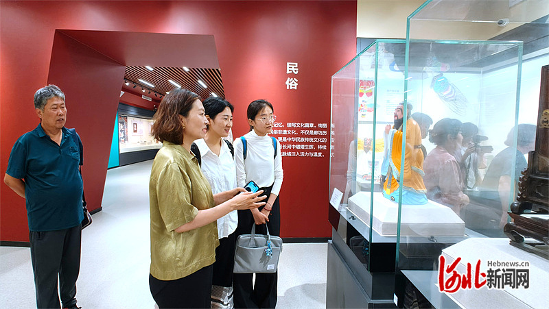 7月5日,参观者在廊坊师范学院非遗博物馆民俗展区欣赏作品。 河北日报记者 刘 英摄